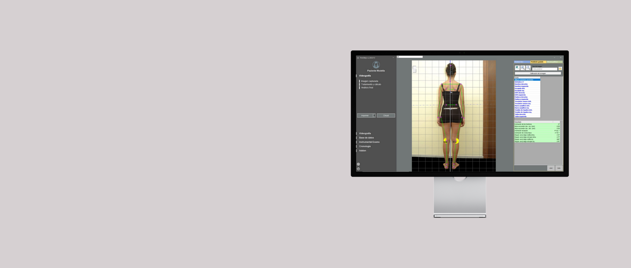 El módulo permite realizar mediciones directas sobre vídeos e imágenes, facilitando el estudio de asimetrías corporales, rangos articulares y patrones de movimiento, todo ello integrado en la ficha del paciente dentro de FreeStep 2.0 y con la posibilidad de generar informes personalizados en formato PDF.